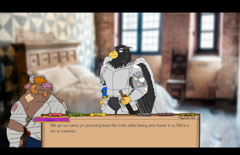 MinotaurStories is a fantasy adventure visual novel with LGBT+, nudity, and sexual themes. Content Warning. Themes like strong language, death, PTSD, and prejudice are present in this project.